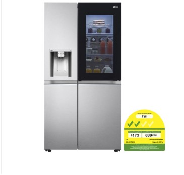 617L SIDE-BY-SIDE-FRIDGE WITH INSTAVIEW DOOR-IN-DOOR™ IN NEW NOBLE STEEL: TYPE TYPEInstaView Door-in-Door™ BASIC Net Storage (Freezer)205Net Storage (Refrigerator)412 Net Storage (total)617Gross Storage (Freezer)250 Gross Storage (Refrigerator)424Gross Storage (total)674 STUFFING Q 20ft / 40ft / 40ft HC,Truck14 / 36 / 36 GENERAL FEATURES Finish (Door)BSHandle Type-MaterialPlastic Handle Type-Contour/Flat DoorFlatHandle Type-Type (Name of handles and Easy open)Pocket DisplayLED88Temp. Control-Express FreezeYes Temp. Control-Child LockYesTemp. Control-Door AlarmYes Temp. Function-Door CoolingYesTemp. Function-Express CoolYes InstaViewYesDoor In DoorTMYes Door CoolingYesMulti-Air FlowYes Cooling SystemNo FrostWIFIYes Smart DiagnosisTMYesSound Power(dB)36(C) Energy Class2tickEnergy Consumption (kWh/year)-(New Reg / Old Reg)?kwh/year RefrigerantR600a-68gRefrigerant-Linear CompressorFLD165NCMA PlumbingN/PlumbingDispenser-UVnanoYes Dispenser - Water DispenserYesDispenser - Ice Dispenser(Cube Ice)Yes Dispenser - Crushed Ice FunctionYesBio shield (Gasket)Yes REFRIGERATOR LampLED(1) COMPARTMENT Hygiene FreshGen2Shelf-Tempered glassYes Shelf-Bottle (Wine) RackYesShelf-Snack Corner / Cheese BoxYes Door basket-Transparent YesMetallic Decoration-ShelfSilver Metallic Decoration-DrawerSilverVeg Box Cover T/V R/U-Tempered GlassYes Veg Box Cover T/V R/L-Tempered GlassYesVegetable Box (Drawer)-OneYes DeodorizerYesEgg BankYes Fresh BalancerYesMetal FreshYes Ice Maker-Automatic - IndoorYesDrawer Box Cover T/V F/U-Tempered Glass Yes Drawer Box Cover T/V F/L-Tempered Glass YesDrawer-Transparent Yes FREEZER