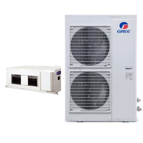 GREE Duct Split Type Air Conditioner-FGR30Pd/DNa-X (8.5 TON): Energy saving Non Inverter Function Cooling & Heating Capacity BTU/hr 102360/112590 Cooling Power Input (Watt) 1130 Rated Input Power (W) 1440 COP/EER (w/w) 2.65 Power Supply (phase/voltage (V) /frequency (Hz) /current (A) 3ph 380~415V 50Hz Air Circulation (m3/h) 5200 Compressor Type Rotary Refrigerant Type R410A Noise Level (dB) Indoor/Outdoor 54/65 Condenser Type Copper Tube Condenser Auto Restart Yes Timer Yes Operation/Control Wireless Remote Indoor (mm) [L×W×H] 1520 × 450 × 840 Outdoor (mm) [L×W×H] 940 ×1650× 460 Net Weight (Indoor) (Kg) 105/145 Net Weight (Outdoor) (Kg) 175/190