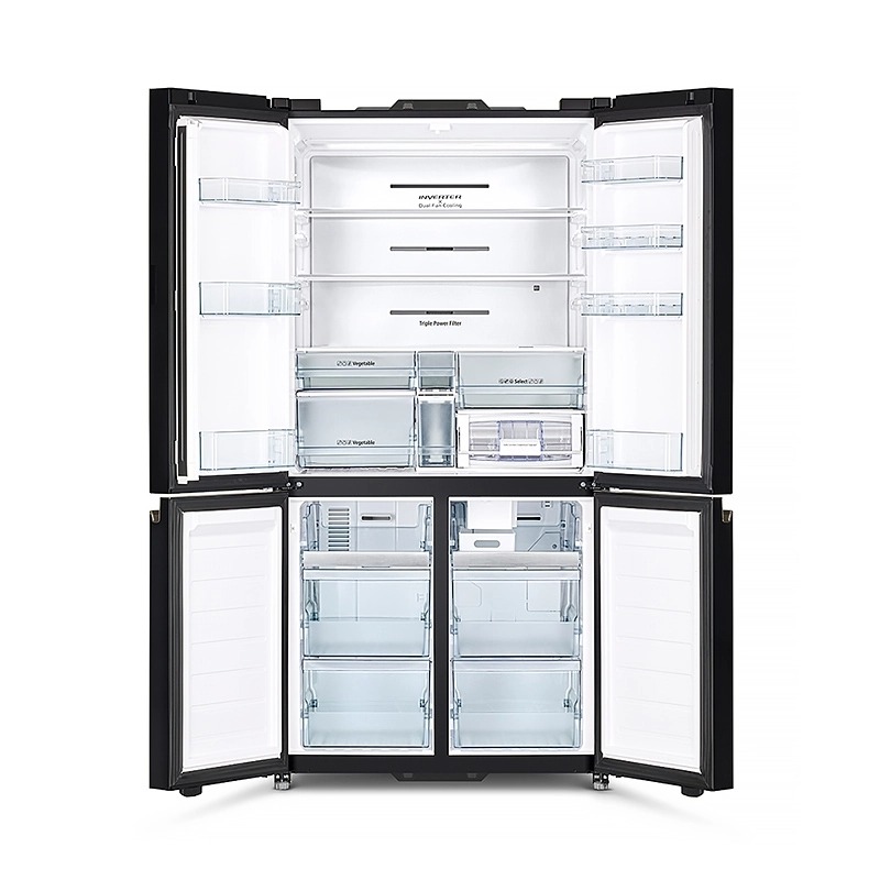 Inverter Control Yes: Dimensions (mm) Width 900 Height 1840 General Features Refrigerant R-600a Door Alarm Yes Others Gross Capacity 638 L Net Capacity 514L Power Supply 220/240V, 50/60Hz Dual Fan Cooling Yes Dual Sensing Control Yes Powerful Deodorization ( Triple power filter ) Yes Ice Maker Automatic Inverter Control Yes Eco Thermo Sensor Yes Intelligent Inverter Fan Yes Depth Without Handle 720