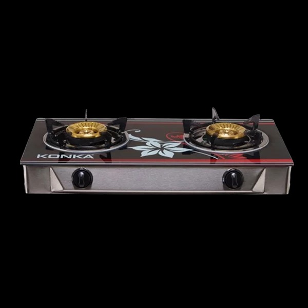 KGLPG603-2D KONKA GAS STOVE -GLASS TOP DOUBLE BURNER (LPG): Features: Automatic Ignition Glass Top, Double Burner Gas Efficient Burner Detachable Trivet Tray For Easy Cleaning
