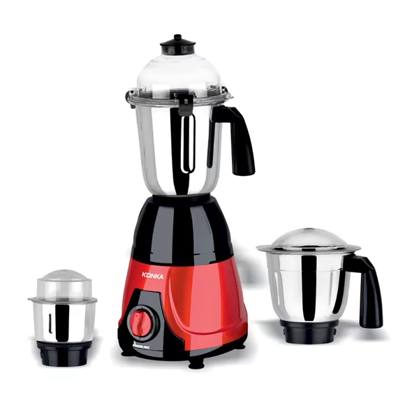 KONKA Mixer Grinder Power Pro (650 Watt): Watt – 650 Watts Colour – Metallic Coating 100% Copper Motor 20 Guage Pure Heavy SS Jars (All) with clip-on one jar as per picture jars 250 Grams Aluminum Jumbo Jar Base – (3 Sets) 3 PC Domes Unbreakable, 100% Virgin Silicon Rubber Gasket Ring Overload Protection (Circuit Breaker Screw Type) Nylon Coupler with Metal Insert (66-Top Quality) 3 Speed control with pulse function Gift Box ITC Saffire (paper)- 5 PLY Master carton will be 4 in 1 – 5 PLY Bubble Packing for Metallic Colors Shrink Wrap on Unit Box