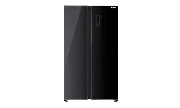 SHARP 2-Door Side By Side Refrigerator SJ-ESB631X-BK | 521 Liters - Black: NET CAPACITY (Liter) 521 Liters NET REFRIGERATOR CAPACITY 344 Liters NET FREEZER CAPACITY 177 Liters REFRIGERANT R600a COOLING SYSTEM Fan DOOR TYPE Glass Door LED LIGHTING Yes NET DIMENSION (W X H X D) MM 900 X 1,770 X 660 (Without Handle) Gross Dimension (WxDxH )mm 972 X 1,862 X 770 NET WEIGHT (KG) 95 NET/ GROSS WEIGHT (KG) 103 COLOUR Black EAN code 4974019204383 ENERGY EFFINCIENCY 2 Ticks