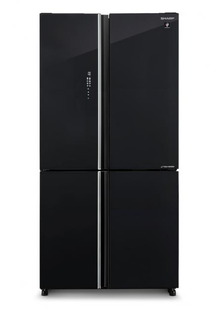 Sharp 4-Door Refrigerator SJ-VX88PG-BK | 639 Liters - Black: CAPACITY (Liter) 639 Liters DIMENSION (WXHXD) 892 x 1,830 x 772 DOOR MATERIAL Glass COLOR Black REFRIGERANT HFC-134a COOLING SYSTEM Hybrid PLASMACLUSTER ION Yes DEODOURISER AG+ Nano DOOR ALARM Yes LED LIGHTING Yes CHILD LOCK Yes GROSS CAPACITY 639 Liters NET CAPACITY (Liter) 567 Liters