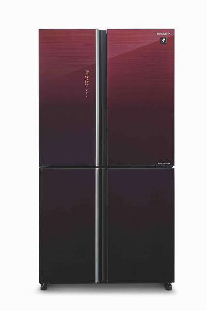 Sharp 4-Door Refrigerator SJ-VX88PG-RD | 639 Liters - RED: CAPACITY (Liter) 639 Liters DIMENSION (WXHXD) 892 x 1,830 x 772 DOOR MATERIAL Glass COLOR Black REFRIGERANT HFC-134a COOLING SYSTEM Hybrid PLASMACLUSTER ION Yes DEODOURISER AG+ Nano DOOR ALARM Yes LED LIGHTING Yes CHILD LOCK Yes GROSS CAPACITY 639 Liters NET CAPACITY (Liter) 567 Liters